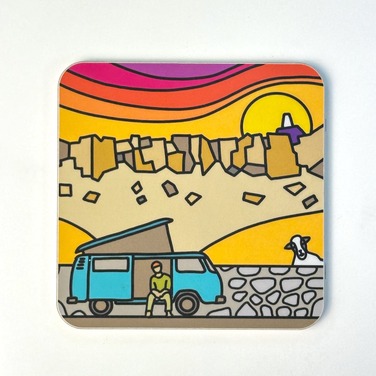 A fun and funky, stylised vision of a gritstone edge with a classic VW camper. Simply iconic.