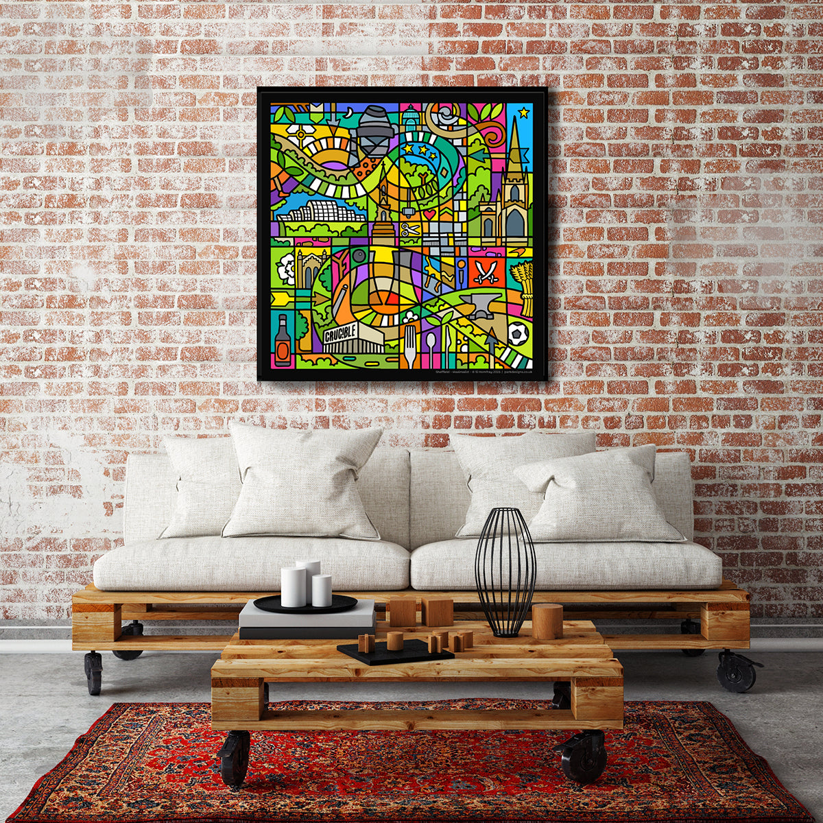 This Sheffield City Illustration incorporates many of the iconic landmarks that make this the great Outdoor City in South Yorkshire.
