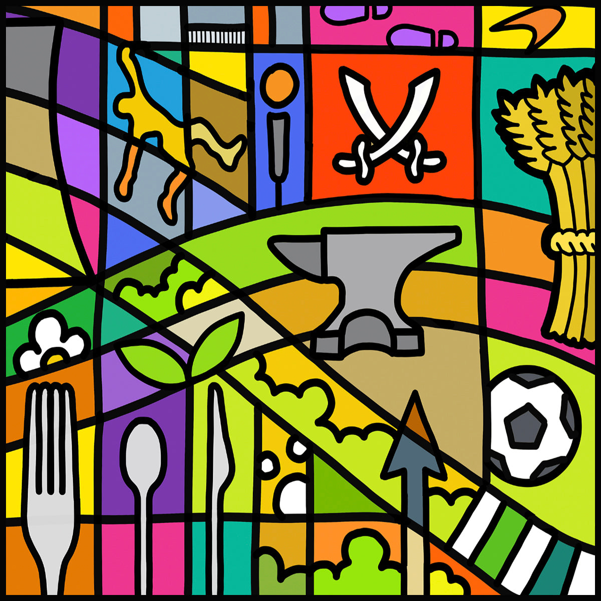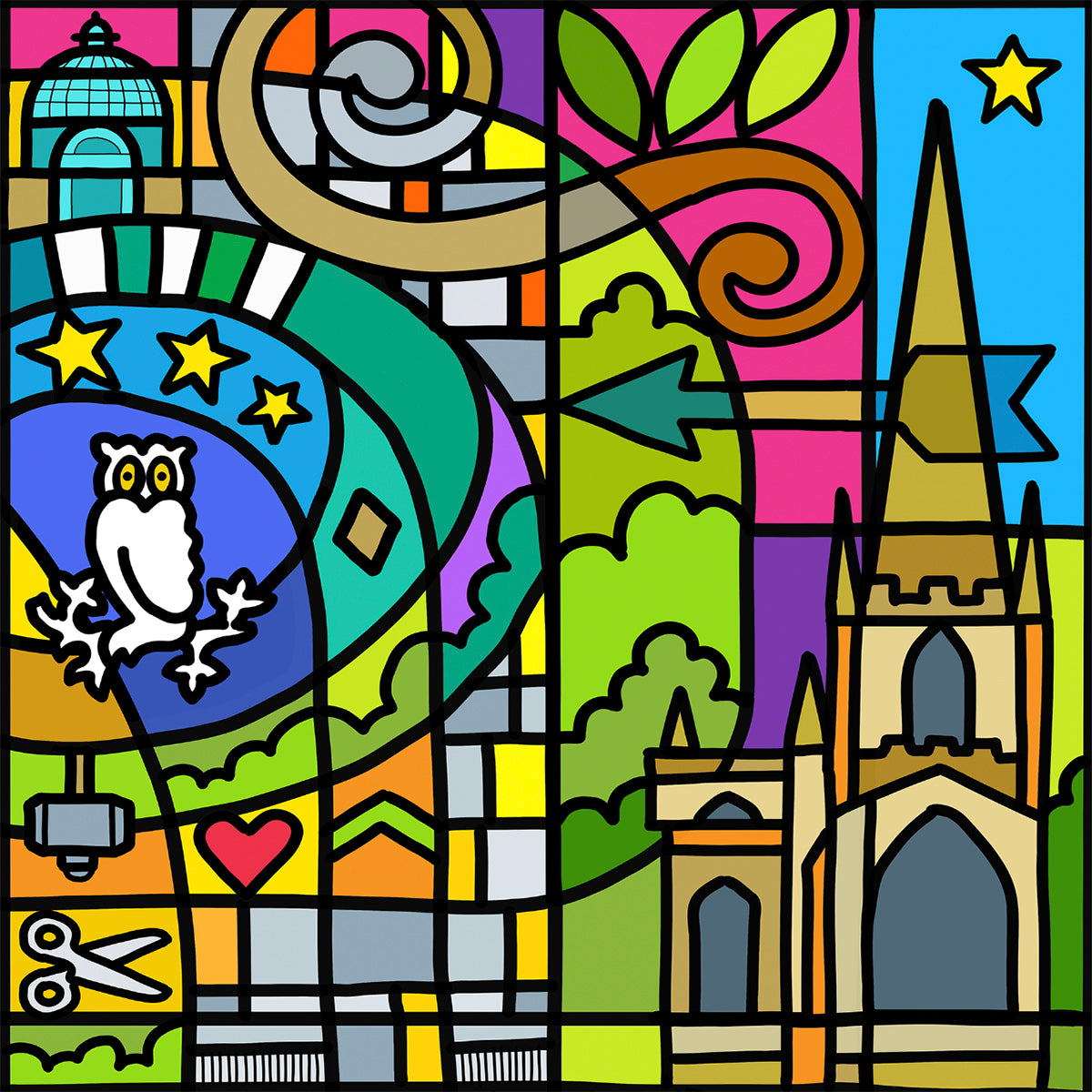 A big bright bold style that encompasses everything Sheffield in a symphony of full colour. Portrayed as a cropped and twisting path representative of the eternal seasons that keep coming around and the timeless nature of life in Sheffield and the Peak District.