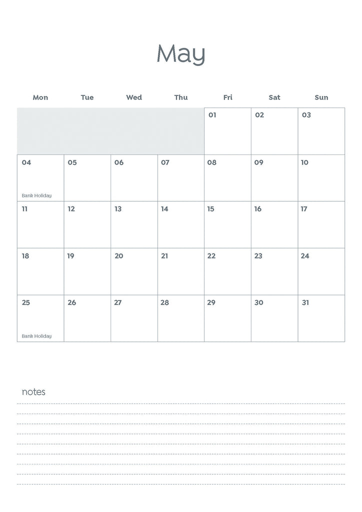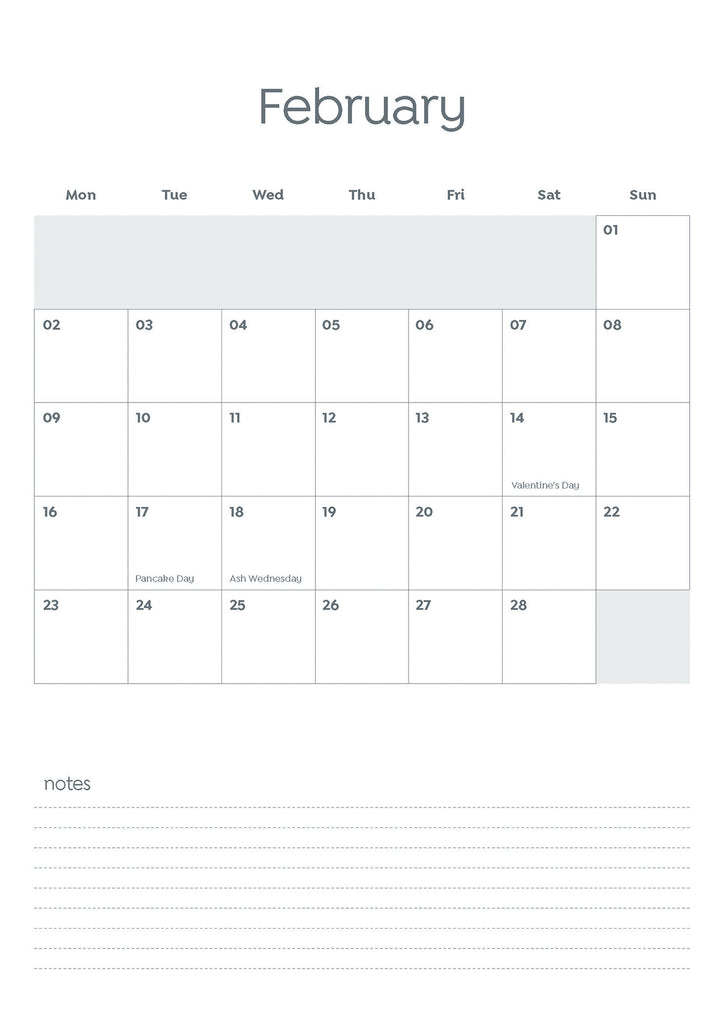 12 months - 12 sides of uncoated paper 170gsm for writing on.